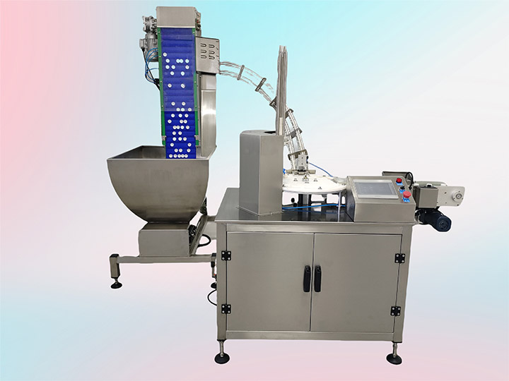 XL-8D-2T型轉(zhuǎn)盤(pán)式鋁箔塞墊機(jī)以達(dá)到合理化生產(chǎn)目的而設(shè)計(jì),采用機(jī)械傳動(dòng),變頻調(diào)速,配合氣動(dòng)翻轉(zhuǎn)真空吸墊片,一次性垂直塞入。塞墊過(guò)程均自動(dòng)化作業(yè)操作簡(jiǎn)單只需將蓋倒入儲(chǔ)料箱將鋁箔墊片放入鋁箔通道即可其它都將由設(shè)備自行完成。速度快,性能穩(wěn)定一致性強(qiáng)。